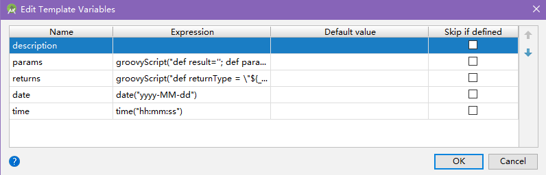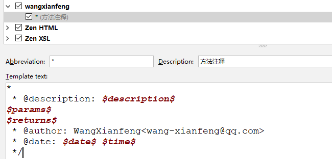 Abbreviation:* Descripttion:方法注释,Expand with选择Enter,内容如下: